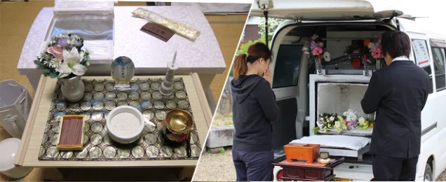 自宅または指定の場所にスタッフが伺い、葬儀を行います。